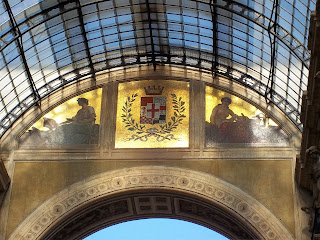 Depois de andar, olhar dezenas de detalhes, as lojas, etc... - deslumbrante - a fome voltou! Procuramos um café e, após dar uma "espiadinha" nos preços dos menus, concluímos que seria mais "interessante" tomar café no McDonnalds... Sim, há um Mc na Galleria e, se me recordo bem, foi motivo de grande protesto entre os italianos a questão de abrir um fast food americano em um ícone turístico como a Vittorio Emanuele! Mas,... não achei ruim devido ao preço do café...rsrsrs!